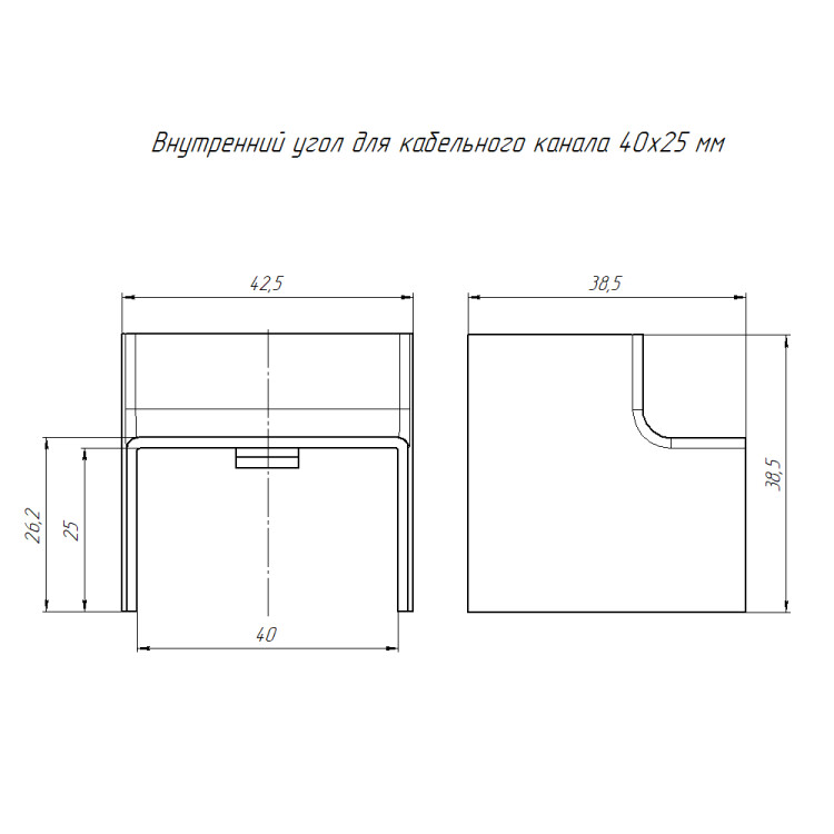 Предназначен для соединения кабельных каналов одинакового типоразмера по внутреннему углу 90°. Аксессуар повышает качество и скорость монтажа кабельного канала, за счет компенсации длины и скрытия неровных срезов.