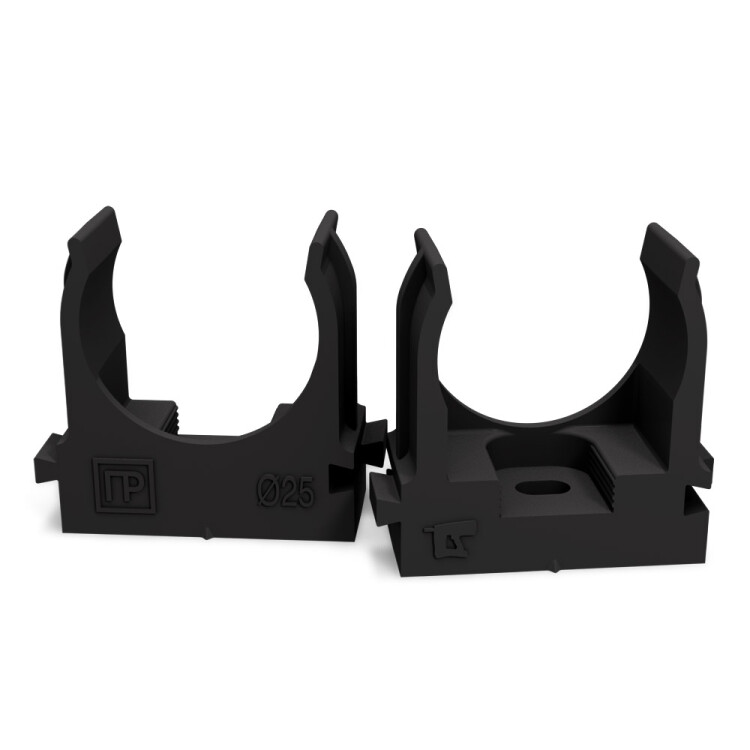 Промрукав Крепеж-клипса для труб для монтажного пистолета черная в п/э д25 (100шт/700шт уп/кор)