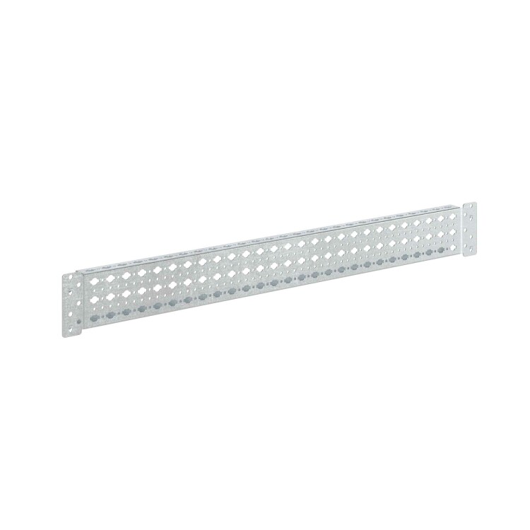 Широкая универсальная рейка предназначена для установки оборудования и усиления конструкции внутри корпуса. В комплект входят 4 рейки и монтажные аксессуары. Материал — оцинкованная сталь толщиной 1,5 мм, с перфорацией шагом 25 мм. Конструкция имеет три монтажные плоскости и устанавливается как по глубине, так и по ширине шкафа. Для монтажа оборудования необходимо использовать закладную гайку – R5NCNM6. Размер Ш/Г: 800 мм.