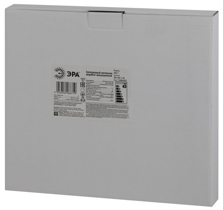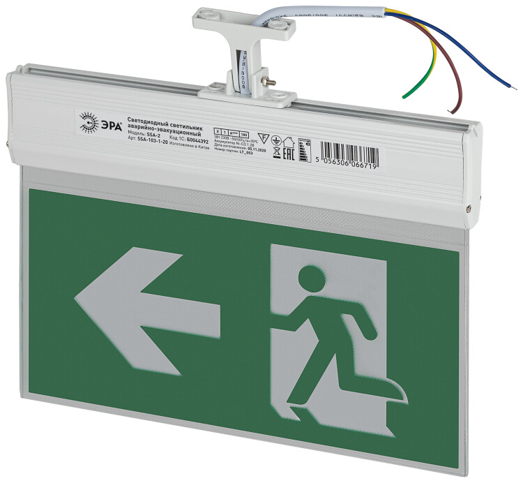 Торцевая эвакуационная подсветка ЭРА SSA-103 в нештатных ситуациях работает свыше 180 минут от встроенного аккумулятора ёмкостью 0,5 Ач. Без питания от электросети создаёт условия для быстрой и безопасной эвакуации. Кнопка «тест» для проверки работы в аварийном режиме. Поворотное крепление 90° для удобного потолочного или настенного монтажа. Крепёжные элементы в комплекте. Двусторонние аварийные светильники ЭРА поставляются с двумя вкладками зелёного цвета (пиктограммы "человек-стрелка"), которые легко заменить на другие. Мощность - 3 Вт. Световой поток - 40 Лм. Габариты - 268 х 241 мм. Корпус изготовлен из пластика.