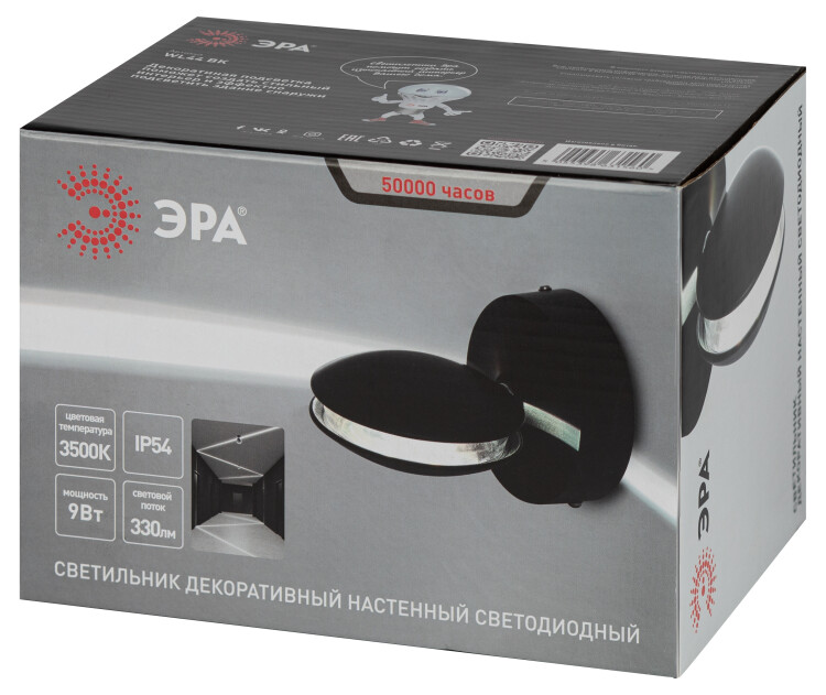ЭРА Светильник накладной светодиодный WL44 BK 9Вт 3500К IP54 черный для интерьера и фасадов зданий
