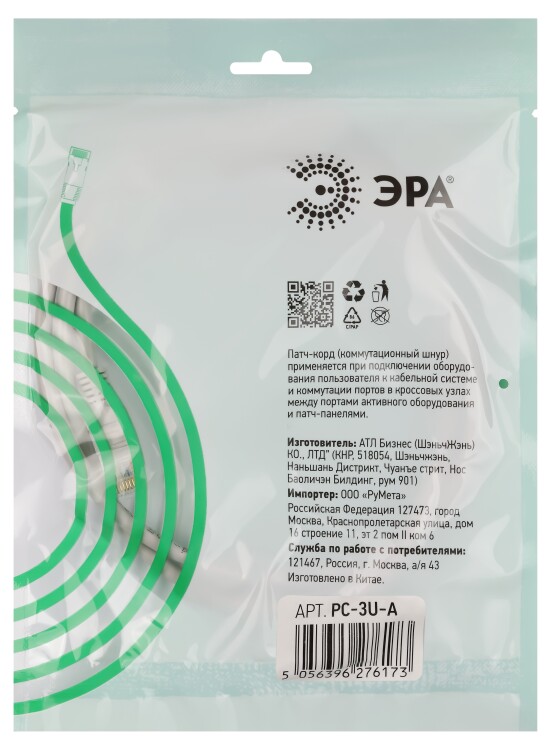 Применяется в структурированных кабельных системах (СКС) для подключения и соединения коммутационного, серверного оборудования и передачи данных между ними.