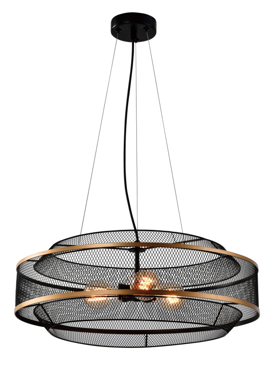 Rivoli Marika - коллекция современных люстр в стиле лофт-кантри. Главная "фишка" - объемный решетчатый абажур из металла. Эффектная мелкая решетка, сочетание матового черного и золотого цветов формируют неповторимый облик светильников Rivoli Marika. Металл имеет стойкое гальваническое покрытие, что защищает светильники потолочные Marika от механических воздействий и выцветания. Металл легкий и прочный. Дизайн создан командой итальянского бренда Rivoli.