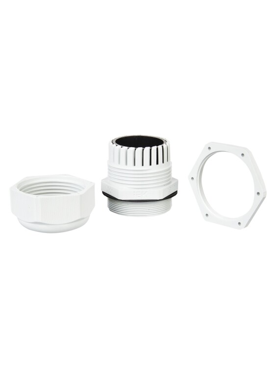 Корпус, гайка уплотнения и фиксирующая гайка выполнены из нейлона. Установка сальника производится при помощи трубного (газового) ключа.