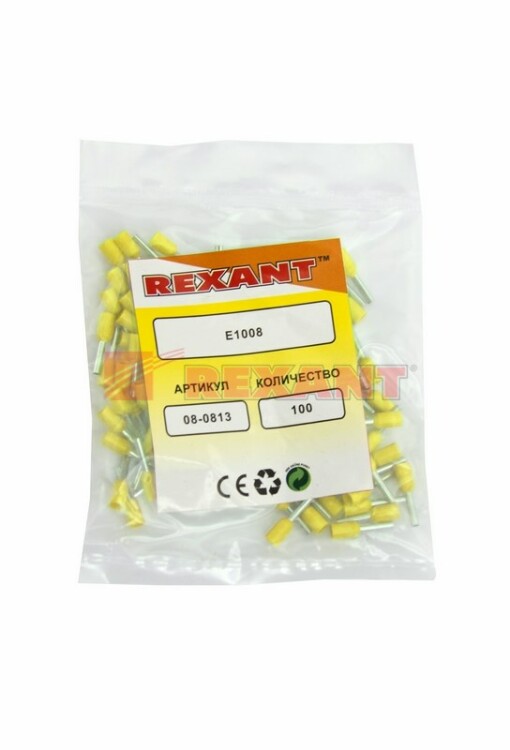 REXANT Наконечник штыревой втулочный изолированный F-8мм 1мм² (НШВи 1.0-8) желтый На 35% дешевле 08-0813-010.
