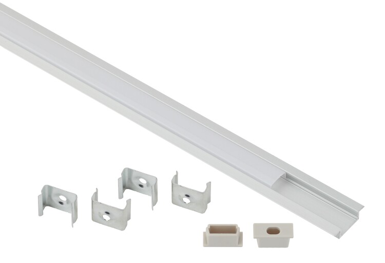 Комплект врезного алюминиевого профиля предназначен для установки светодиодных лент с шириной подложки до 10 мм. За счёт отведения тепла увеличивает срок службы светодиодной ленты. Анодированное покрытие обеспечивает устоичивость к воздействиям окружающей среды и легко окрашивается. Эстетично смотрится в интерьере, обеспечивает механическую защиту. В комплекте врезной алюминиевый профиль САВ251 22х6 мм 2 м, белый матовый экран из поликарбоната 2 м, 4 крепления и 2 заглушки.