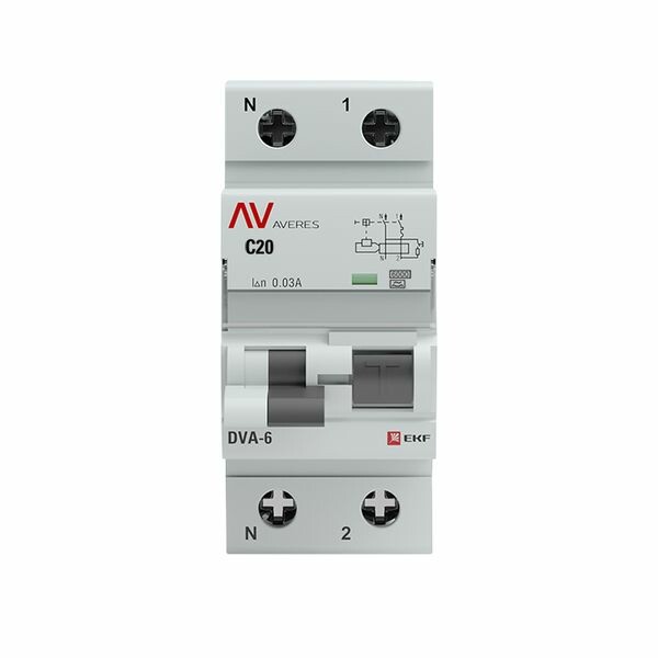 EKF Averes DVA-6 Диф. Автомат (C) 1P+N 20А/30мА тип А 6кА.