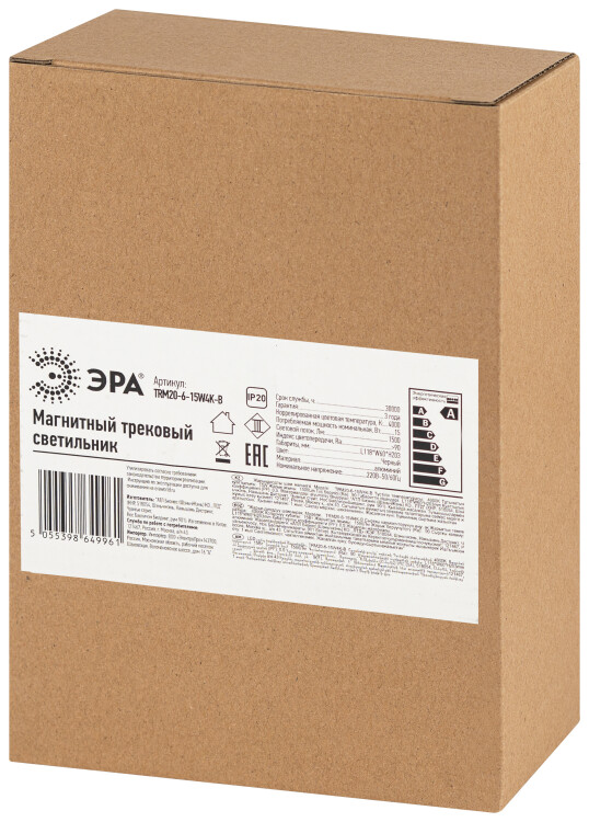 ЭРА Магнитный трековый светильник TRM20-6-15W4K BK светодиодный 15Вт 4000К черный для системы NOVA