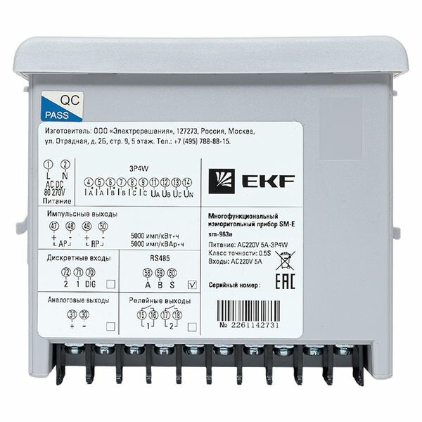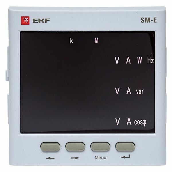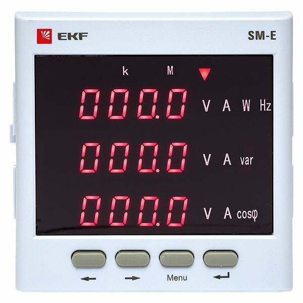 Многофункциональный измерительный прибор SM-E является цифровым программируемым устройством, предназначенным для измерения параметров трехфазных 3-х или 4-х проводных сетей с симметричной и несимметричной нагрузкой с одновременным отображением измеряемых величин и цифровой передачей данных. Прибор дает возможность управления, анализа и оптимизации работы энер-гетического оборудования, систем и промышленных цепей. Прибор измеряет следующие параметры: - среднеквадратичных значений тока и напряжения, частоты, активной, ре-активной и полной мощности, активной и реактивной энергии в прямом и обратном направлениях; - коэффициентов мощности, частоты; - усредненной активной и реактивной мощности.