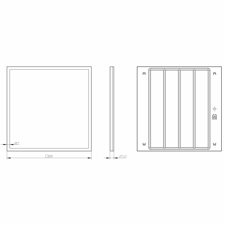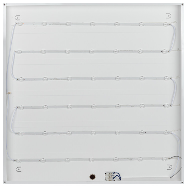 Светодиодная панель. Светит, как ультратонкая панель приятным равномерным светом, и не уступает по яркости, при этом имеет значительно более низкую цену. Драйвер встроен в корпус светильник полностью готов к установке и легко монтируется на потолок любого типа как в качестве встраиваемого светильника, так и накладным или подвесным способом. Легко устанавливается в потолки Армстронг, на гипсокартонные, бетонные потолки. Позволяет в разы ускорить, а значит и удешевить монтаж. Цветовая температура: 6500 К - холодный белый свет, повышающий работоспособность и концентрацию внимания. Светильник создаёт качественный ровный свет: индекс цветопередачи Ra - выше 80, что обеспечивает отличную цветопередачу; коэффициент пульсаций - ниже 5% - соответствует самым жестким требованиям СанПин. Такое освещение рекомендовано для учебных, дошкольных, медицинских учреждений. Является идеальным решением для офисных и общественных пространств. Габаритная яркость: 3550 кд/м2. Класс светораспределения: П. Класс по ограничению яркости: 1.