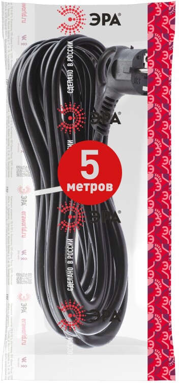 ЭРА Шнур сетевой с вилкой U-3x1,5-5m-B с заземлением 5м ПВС 3x1,5мм2 черный
