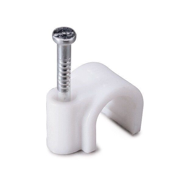 Предназначены для монтажа круглых кабелей и проводов на деревянных поверхностях и гипсокартонеМатериал гвоздя: закаленная стальМатериал скобы: полиэтиленЦвет: белый