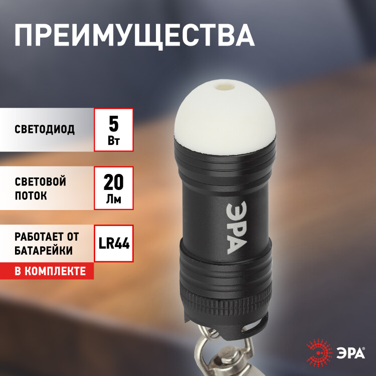 ЭРА Фонарик брелок светодиодный BB-701 для ключей алюминиевый 0.5Вт светонакопитель