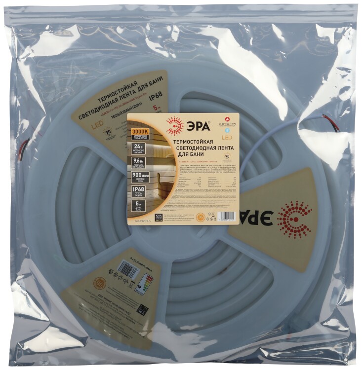ЭРА Лента светодиодная термостойкая для бани LS2835-9,6-120-24-3000K-IP68-3 year-5m теплый белый