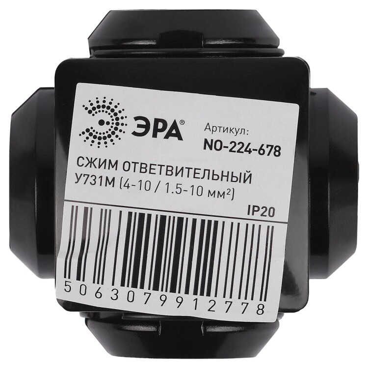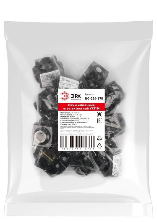 - Каждое изделие обладает индивидуальным штрих-кодом, на котором указаны модель зажима и диапазон сечений кабеля «магистраль–ответвление».