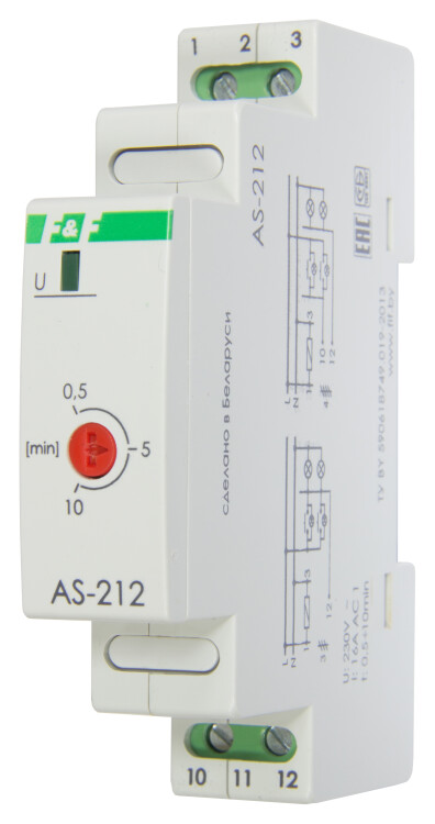 Лестничный автомат (таймер-выключатель) AS-212, 0.5-10 минут, 230В AC 16А 1NO IP20