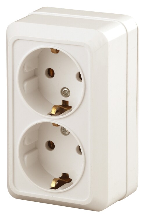 Intro Розетка Quadro 2-204-02 с заземлением двойная 2х2P+E Schuko, 16А-250В, IP20, ОУ, слоновая кость