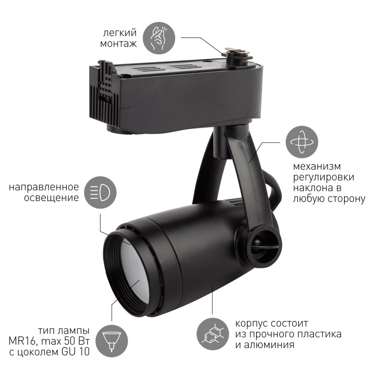 Трековый светильник TR12-GU10 лаконичного черного цвета и стильной зауженной формы от компании Эра необходим при создании акцентного освещения. Он выделит конкретный объект, создаст стильную подсветку. Подобные светильники имеют особый механизм, который позволяет регулировать угол наклона светильника, изменяя восприятие пространства в целом. Трековые светильники выполняют несколько функций: в магазинах они направляют потенциального покупателя к конкретному товару, в офисах разграничивают пространство. Источником света является лампа с цоколем GU10, что делает светильник максимально универсальным и позволяет подобрать необходимую мощность, цветовую температуру и угол рассеивания. Светильник отлично впишется в любой дизайн, создаст качественные акценты. Стилистическое разнообразие моделей трековых светильников Эра позволит подобрать наиболее подходящий вариант для любого помещения.