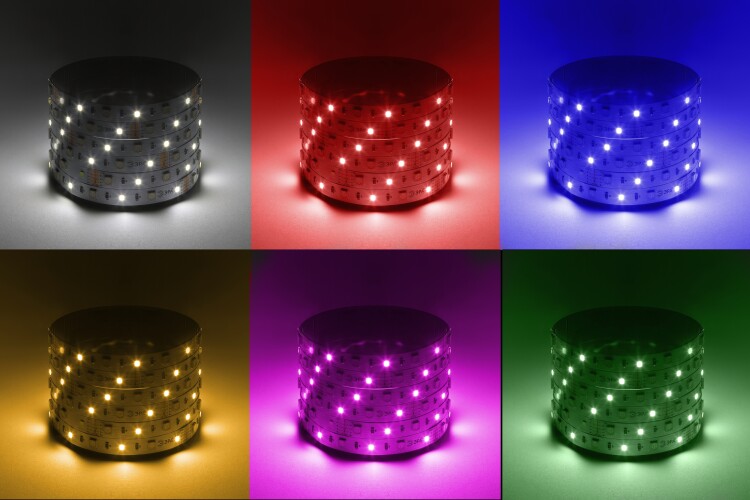 Светодиодная лента LS5050-14,4-60-12-RGB+W(6500)-IP20-1 year-5m со степенью защиты от пыли и влаги IP20 - современный способ создания внутреннего освещения, подсветки ниш, лестничного пространства, систем хранения, а также декоративного и художественного оформления любых объектов и форм. Легко и быстро устанавливается на любой гладкой поверхности с помощью скотча, расположенного на оборотной стороне ленты. Используя алюминиевый профиль, можно создавать необычные и функциональные решения освещения в Вашем интерьере. Рабочее напряжение ленты составляет 12 В, а мощность равна 14,4 Вт/м. Светодиодная лента обладает световым потоком 240 лм/м с цветом свечения RGB + холодный белый(6500К + 625/520/465нМ). ВНИМАНИЕ: - светодиодную ленту с напряжением 12В допустимо подключать последовательно отрезками не более 5 м. - для светодиодных лент с мощностью выше 9.6 Вт обязательно использование алюминиевого профиля для дополнительного охлаждения. Это существенно продлит срок службы светодиодной ленты. - во избежание выхода из строя не допускается длительная работа ленты в смотанном виде.