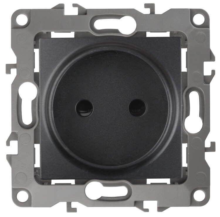 Розетка серии Эра 12 скрытой установки механизм цвет антрацит 12-2105-05. Номинальные характеристики 16А 250В. Сделана из поликарбоната, оснащёна автоматическими клеммами для быстрй и надёжной фиксации жил кабеля в механиме. Парные клеммы обеспечивают соединение шлейфом. Монтаж в подрозетник производится и на лапки, и на винты. Рамки приобретаются отдельно. Рамки Эра 12: 1 пост 12-5001-хх, 2 поста 12-5002-хх, 3 поста 12-5003-хх, 4 поста 12-5004-хх, 5 постов 12-5005-хх. Рамки Эра 12 Сатин: 1 пост 12-5101-хх, 2 поста 12-5102-хх, 3 поста 12-5103-хх, 4 поста 12-5104-хх, 5 постов - 12-5105-хх (хх - код цвета: 01-белый, 02-слоновая кость, 03-алюминий, 04-шампань, 05-антрацит, 06-чёрный, 07-ольха(белёный дуб-сатин), 08-вишня, 09-дуб, 10-венге, 11-сосна, 21-жёлтый, 22-оранжевый, 23-красный, 24-охра, 25-бордо, 26-лайм, 27-зелёный, 28-голубой, 29-синий).