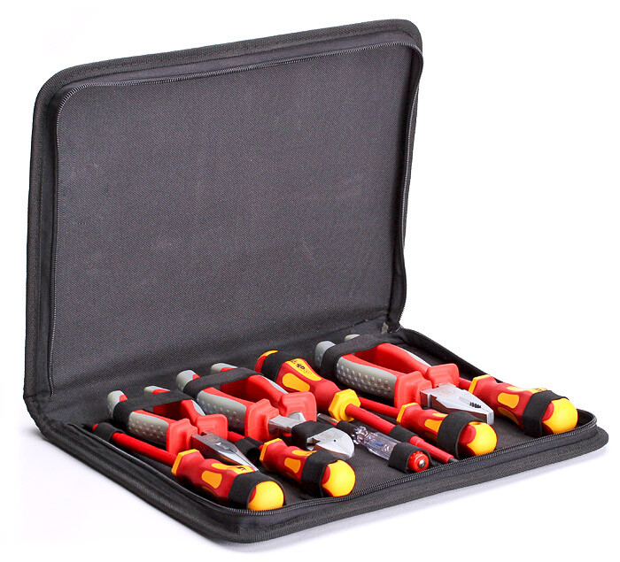 Для работы под напряжением до 1000 В;Состав набора:;диэлектрические пассатижи СТАНДАРТ 180 мм;диэлектрические бокорезы усиленные СТАНДАРТ 180 мм;диэлектрические длинногубцы СТАНДАРТ 160 мм;диэлектрическая отвертка: шлиц 3х75;диэлектрическая отвертка: шлиц 4х100;диэлектрическая отвертка: шлиц 5.5х125;диэлектрическая отвертка: PH1x100;диэлектрическая отвертка: PH2x100;отвертка-индикатор;Упаковка: тканевый водозащитный кофр;Габариты упаковки: 340х260х40 мм;Вес набора: 1.50 кг;