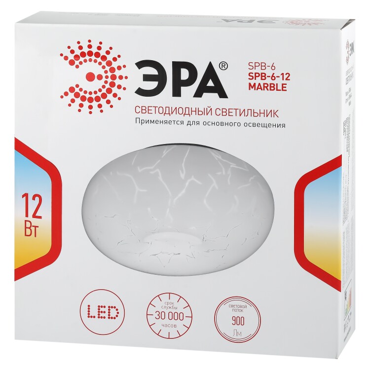 ЭРА Светильник потолочный светодиодный Классик без ДУ SPB-6 - 12 Marble светодиодный 12Вт