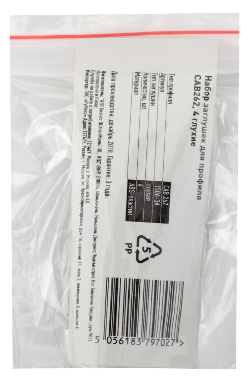 Набор заглушек для профиля CAB262, 4 глухие. Выполнены из негорючего пластика.