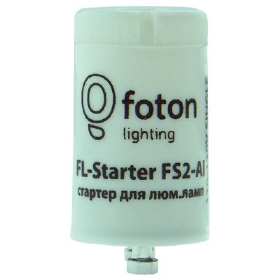 Стартер для люминесцентных ламп FL-Starter FS2/FS10 Cu/Al предназначены для запуска (зажигания) люминесцентных ламп и применяется в схеме подключения к электромагнитному балласту (дросселю). Корпус стартера состоит из изолирующей панели с двумя контактами из меди или алюминия, которая закрывает ее пластмассовым футляром. На изолирующую панель крепится миниатюрный конденсатор способствующий зажиганию лампы. Напряжение электросети для стартера FL-Starter FS2/FS10 Cu/Al равно