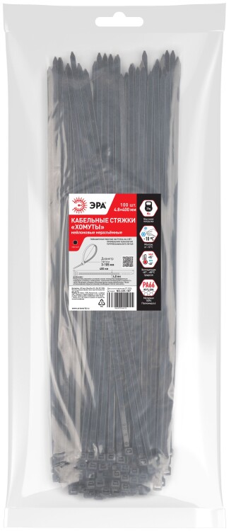Нейлоновые хомуты (кабельные стяжки) ЭРА обладают неразъёмным замковым механизмом одностороннего действия.