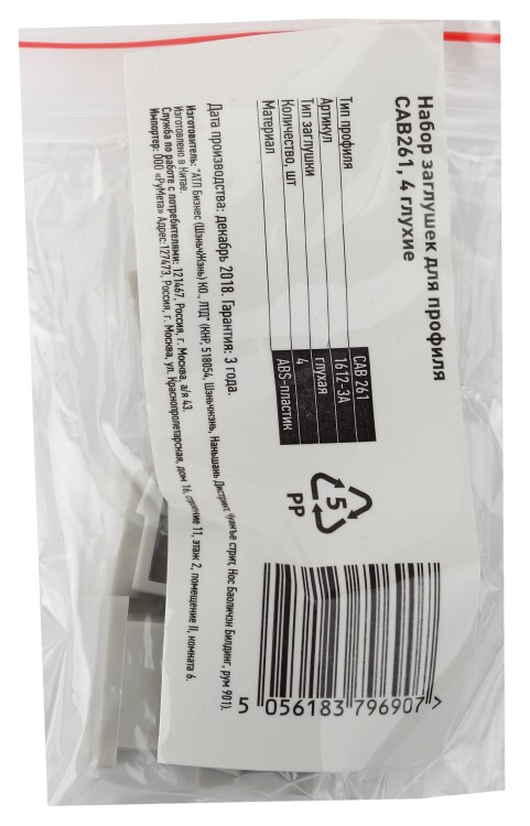 Набор заглушек для профиля CAB261, 4 глухие. Выполнены из стойкого негорючего пластика.