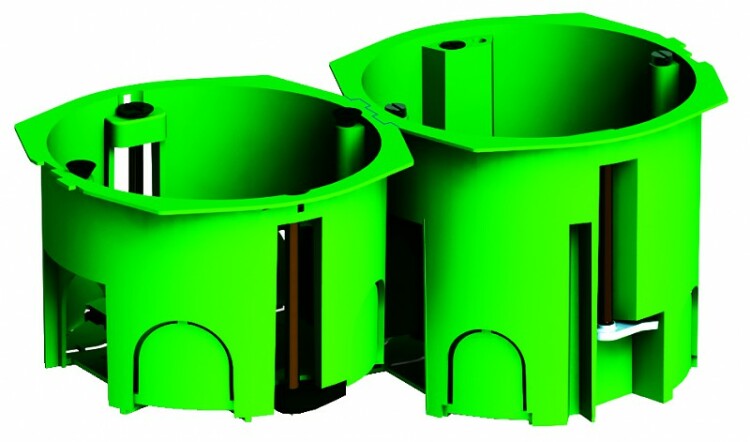 Установочные коробки КУ позволяют осуществлять монтаж электрических розеток, выключателей, диммеров и другихэлектроустановочных изделий в полые стены и перегородки. Все установочные коробки данной серии соединяются между собой в блоки, для установки рядом вертикально или горизонтально. Соединение осуществляется при помощи кабельных переходников ПК5201 или ПК5202 и может содержать несколько механизмов в блоке (межцентровое расстояние 71 мм). Степень защиты IP20. Напряжение 400 В. Материал полипропилен с антипиреном, имеющий огнестойкость 850 С.
