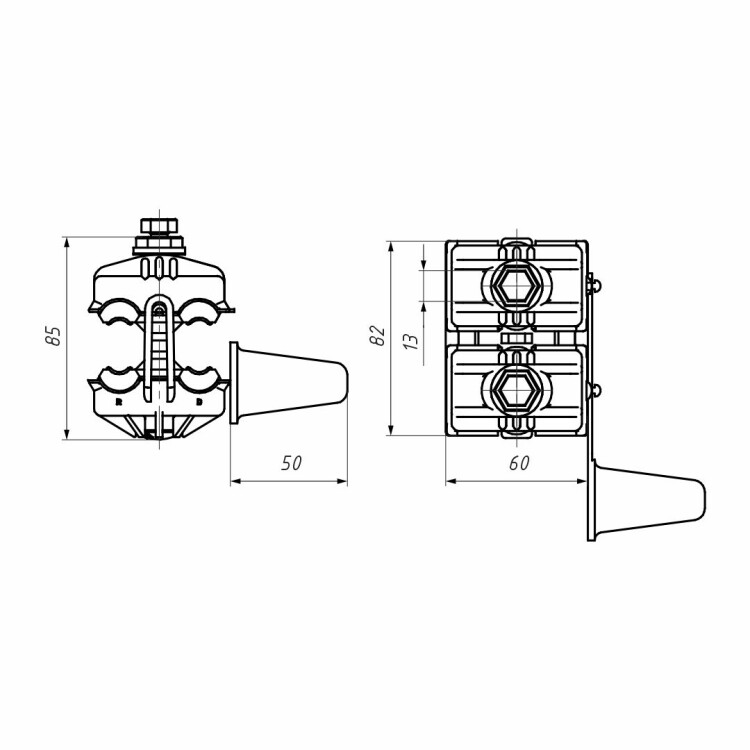Предназначен для соединения провода СИП-3 магистрали с проводами ответвлений в воздушных сетях напряжением 6—20 кВ.Применяется для изолированных проводов. При затягивании болта его острые элементы прокалывают изоляцию, создавая соединение. При достижении необходимого усилия затяжки головка болта срывается, предотвращая перетяжку и повреждение провода. Контактные пластины изготовлены из алюминиевого сплава, обеспечивают хорошую проводимость и совместимость с алюминиевыми проводами. Прокалывающие зубья контактных пластин зажимов имеют пирамидальную форму, благодаря этому достигается быстрый электрический контакт и надежная герметизация зажимов. Прокалывающие элементы покрыты токопроводящей смазкой для снижения переходного сопротивления и защиты от окисления. Зажим устойчив к ультрафиолету, перепадам температур (от -60°С до +50°С), коррозии и агрессивным атмосферным воздействиям.