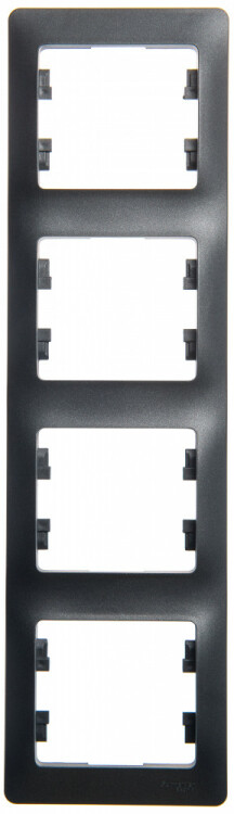 Рамка Systeme Electric (ранее Schneider Electric) серии Glossa (цвет антрацит) четырёхместная. Устанавливается в вертикальном положении. Выполнена из материала PС+ASA, стойкого к УФ-излучению и появлению царапин. Позволяет гармонично вписать электроустановочное изделие в интерьер помещения.