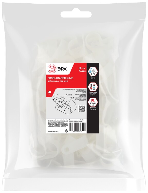 ЭРА Скоба кабельная нейлоновая под винт NO-225-266 16 мм белая 50 шт