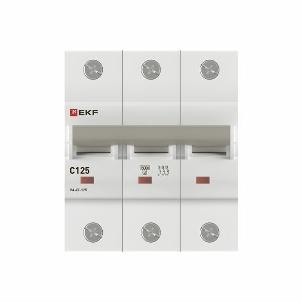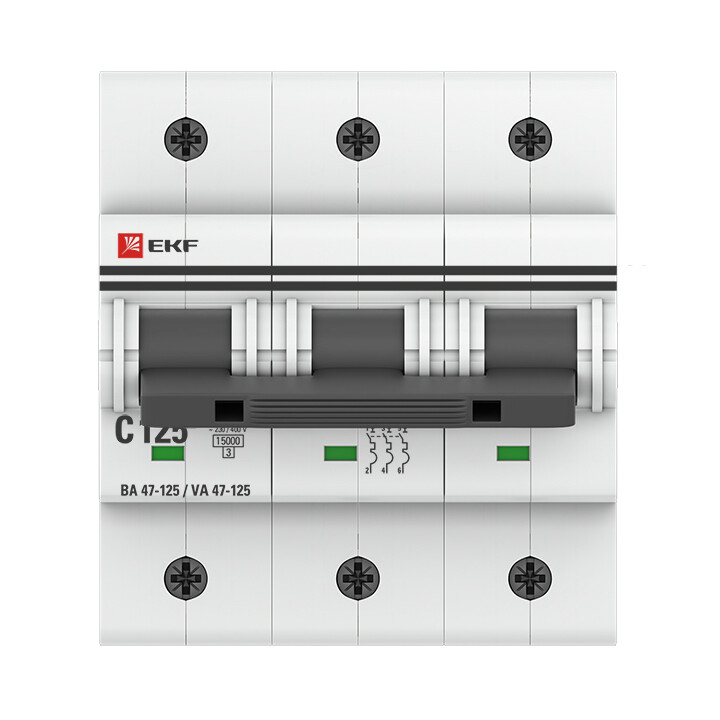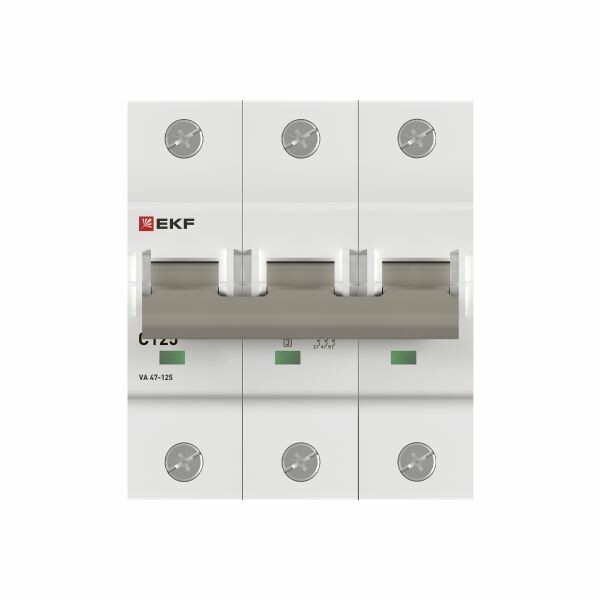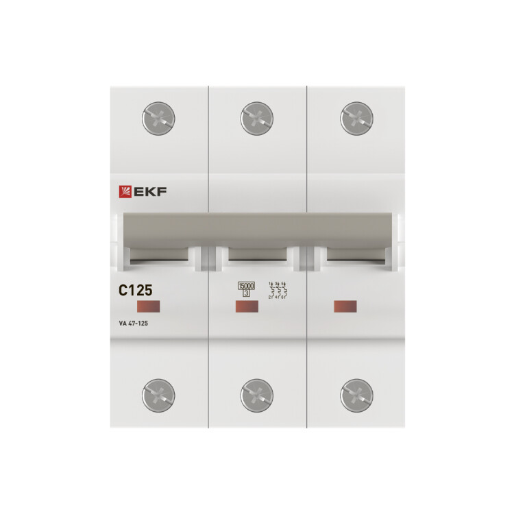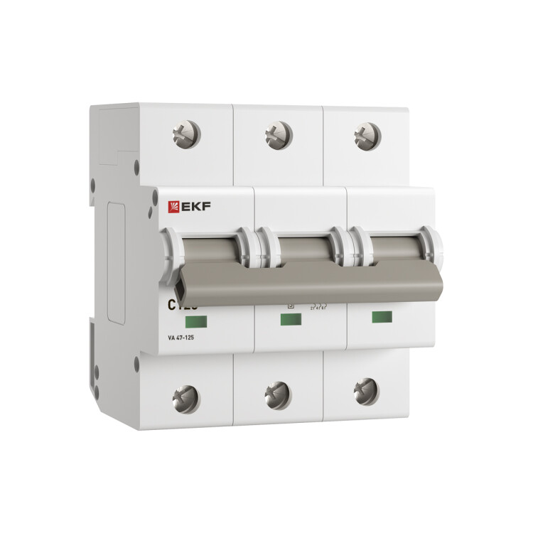 Автоматические выключатели ВА 47-125 EKF PROxima благодаря высокой предельной коммутационной способности 15 кА могут использоваться вместо силовых автоматических выключателей. Выключатели имеют ширину корпуса 1,5 модуля (27 мм), производятся с номинальными токами до 125 А. Для надежного гашения дуги используется двойной разрыв контактов и две дугогасительные камеры. Оптимальная токопроводимость обеспечивается серебросодержащей контактной группой.