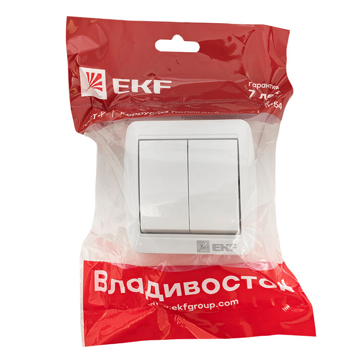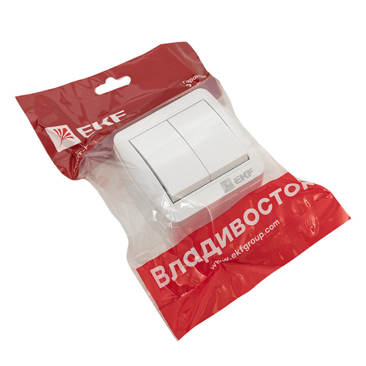 Выключатель двуклавишный EKF серии Владивосток позволяет организовать электроснабжение в условиях высокой влажности и пыльных помещениях, на улице при условии установки под навесом. Герметичные вводы с двух сторон изделия обеспечивают надежную защиту, позволяя использовать устройство в агрессивных условиях.