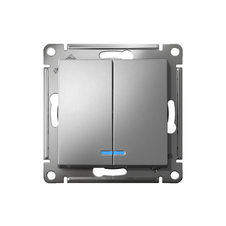 Systeme Electric AtlasDesign Сталь Выключатель 2-клавишный с подсветкой, сх.5а, 10АХ, механизм