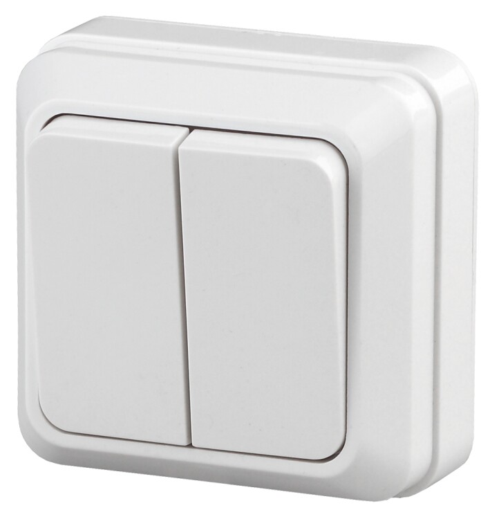 Выключатель Intro Quadro 2-104-01 двухклавишный 10А-250В, IP20, ОУ, белый