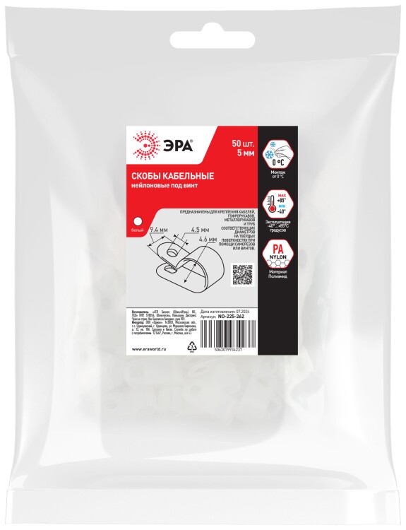 ЭРА Скоба кабельная нейлоновая под винт NO-225-262 5 мм белая 50 шт