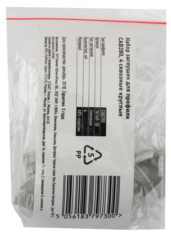 Набор заглушек для профиля CAB280, 4 сквозные круглые. Выполнены из негорючего пластика.