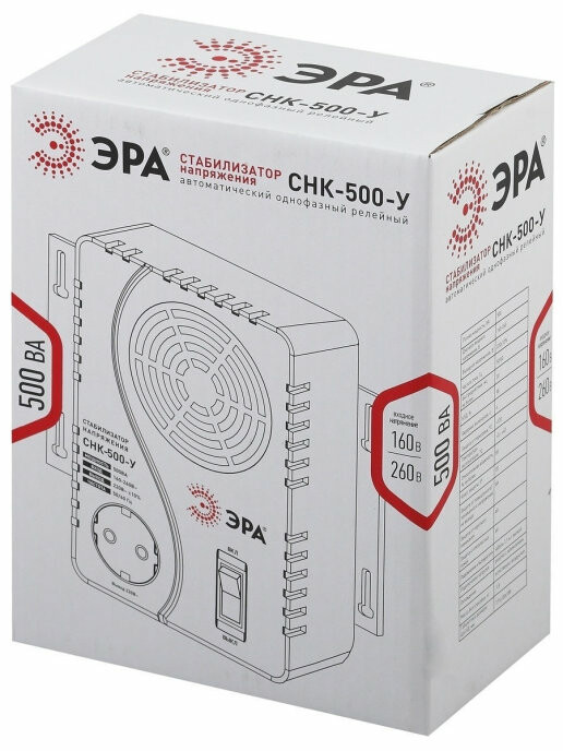 ЭРА СНК-500-У Стабилизатор напр. компакт, универс., 160-260В/220В, 500ВА (6/144)