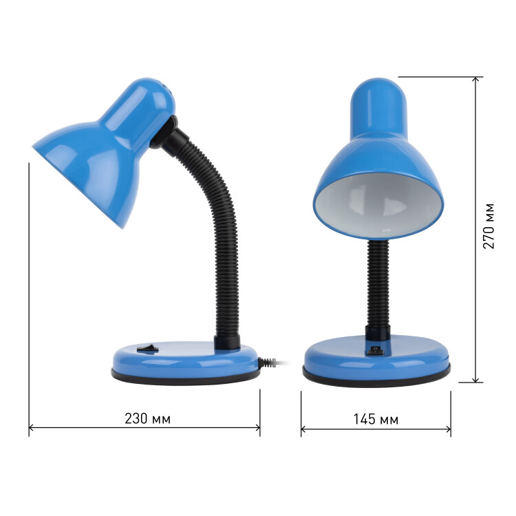 Металлический плафон. Направление света регулируется гибкой стойкой, которая обеспечивает наклон и поворот плафон а в любом направлении. Выключатель на основании. Классический дизайн.