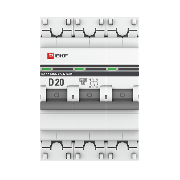 EKF PROxima ВА 47-63M Автоматический выключатель (D) 3P 20А 6кА с электромагнитным расцепителем