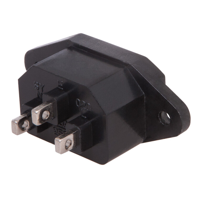 Cетевое гнездо на корпус используется для подключения оборудования к сети переменного тока. Штекер крепится к корпусу с помощью боковыx винтов. Имеет три контакта: ноль, фаза и заземление, к которым с передней стороны подсоединяется сетевой шнур, а с задней - подключается оборудование.