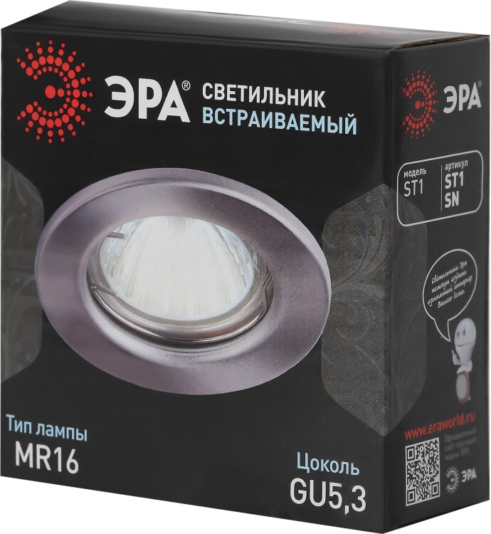 Светильник встраиваемый ST1 SN - замечательное решение для любой комнаты в вашем доме. Точечные светильники можно использовать как в качестве базового освещения, так и для создания акцентов в определенных зонах комнаты. Благодаря скрытой части корпуса светильники можно встраивать в потолок или стены, создавая разный стиль помещений. Светильник ЭРА с приятным дизайном подойдет для помещений с разным интерьером: от минимализма до хай-тека, прованса или скандинавского стиля. Максимальная мощность лампы – 50 Вт. При помощи точечных светильников можно освещать только те участки помещения, которыми вы пользуетесь в данный момент, не затрачивая лишнюю элеткроэнергию. Корпус встраиваемого светильника изготовлен из стали, что делает его особенно удобным в использовании. Диаметр отверстия, требуемого для установки светильника составляет 60 мм, а диаметр самого светильника – 80 мм. Цоколь под лампу GU5.3 в комплекте. Купив точечный светильник бренда ЭРА, вы останетесь довольны и сможете создать приятную атмосферу в доме. Внимание: лампа не входит в комплектацию.