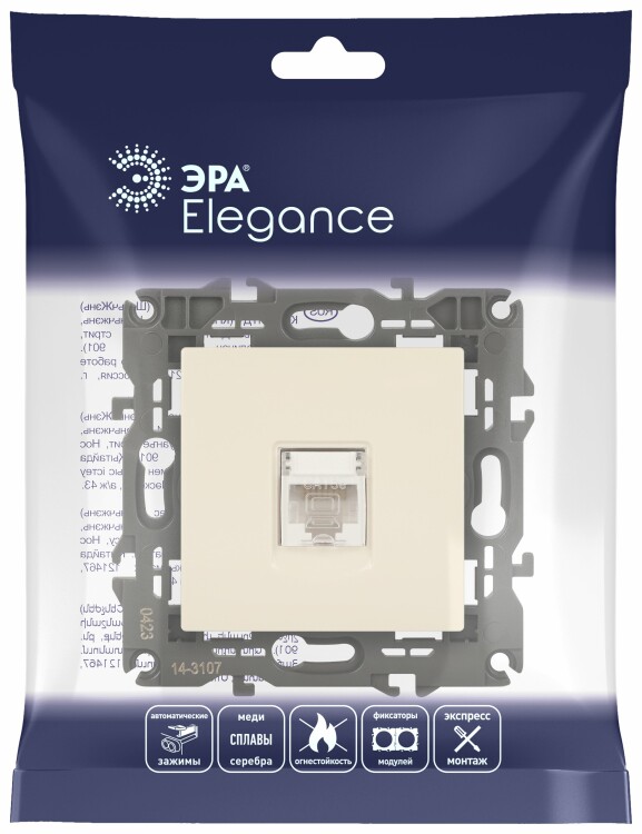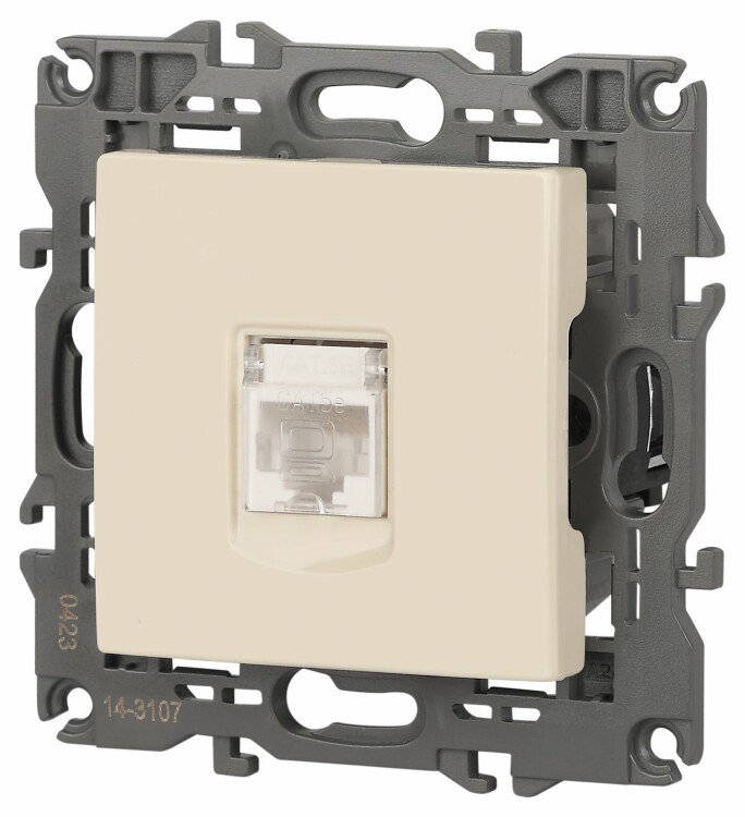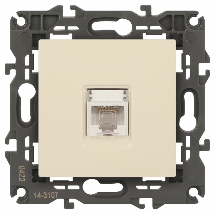 Розетка интернет RJ45 серии Эра Elegance цвет слоновая кость 14-3107-02. Рамки приобретаются отдельно. Рамки Эра Elegance ПЛАСТИК: 1 пост 14-5001-хх, 2 поста 14-5002-хх, 3 поста 14-5003-хх, 4 поста 14-5004-хх, 5 постов 14-5005-хх; СТЕКЛО: 1 пост 14-5101-хх, 2 поста 14-5102-хх, 3 поста 14-5103-хх, 4 поста 14-5104-хх; МЕТАЛЛ: 1 пост 14-5201-хх, 2 поста 14-5202-хх, 3 поста 14-5203-хх, 4 поста 14-5204-хх; ДЕРЕВО: 1 пост 14-5301-хх, 2 поста 14-5302-хх, 3 поста 14-5303-хх, 4 поста 14-5304-хх (хх - код цвета: 00-прозрачный, 01-белый, белёный дуб, 02-слоновая кость, 03-алюминий, 04-шампань, 05-чёрный, чёрное дерево, 07-ясень, 09-дуб, 10-венге, 11-клён, 14-медь, 21-жёлтый, 22-оранжевый, 23-красный, 25-бордо, 26-лайм, 27-зелёный, 28-голубой, 29-синий, 30-розовый, 31-мокко, 32-серый, 41-сталь, 42-титан).