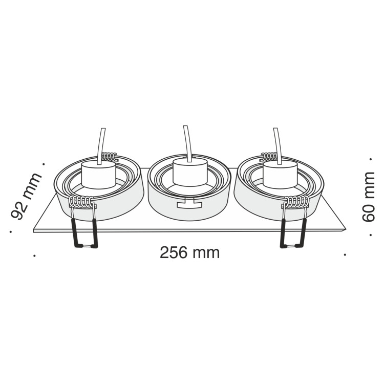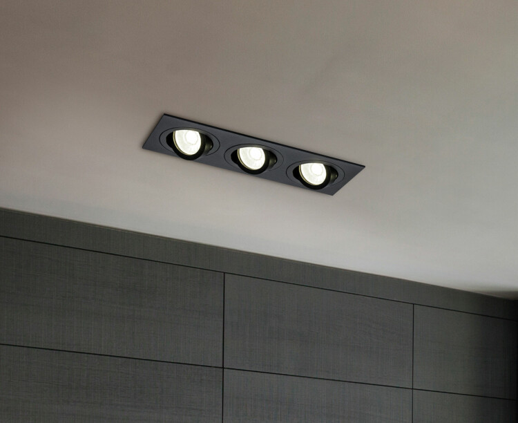 Встраиваемые потолочные светильники с корпусом, изготовленным из алюминия по технологии литья под давлением. При окрашивании используется стойкая к царапинам порошковая краска. Направление светового потока регулируется в одной плоскости с отклонением от оси на 25°. Серия представлена моделями с одной лампой, а также комбинациями из двух и трех светильников, собранных в единой металлической раме. В качестве источника света рекомендуется использовать лампы Voltega (art. 7060/7061) мощностью 7W и углом рассеивания 38°. Диммируемые версии ламп — art. 7108/7109. Встраиваемый плоско-поворотный светильник GU10 х 3 х 50W (лампы приобретаются отдельно), черный металл Наружный размер - 256 х 92 мм Монтажный размер - 245 х 80 мм Глубина встройки - 80 мм
