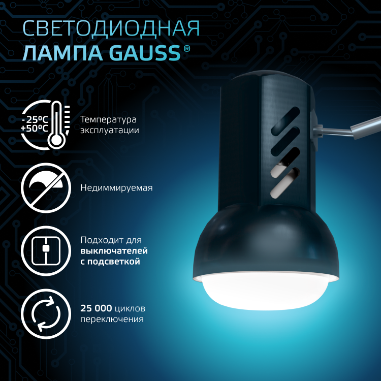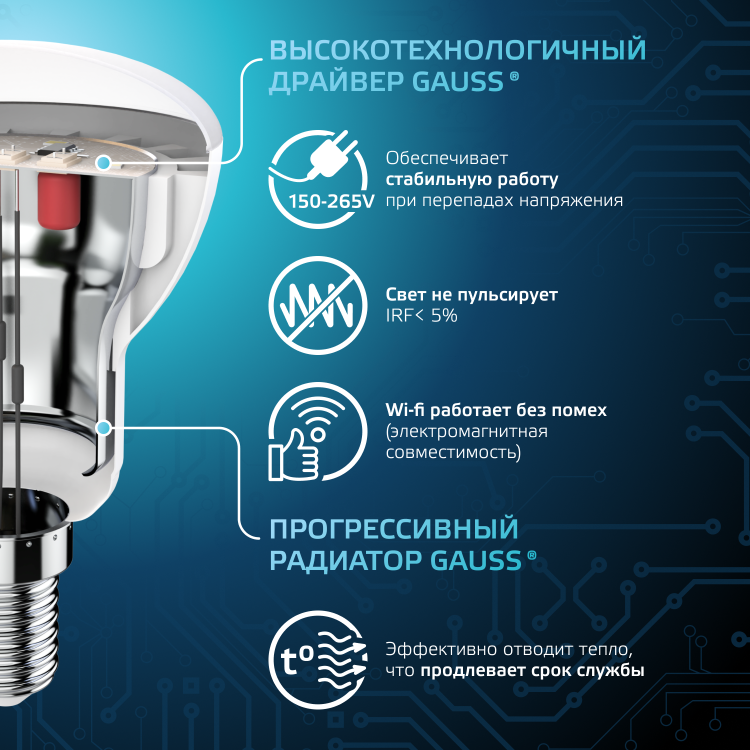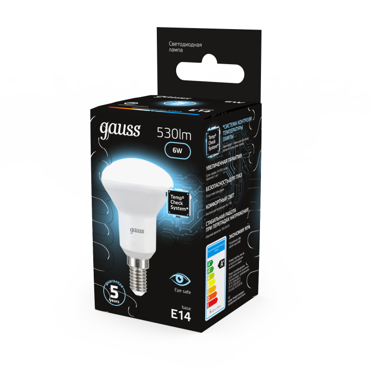 Отличная замена ламп накаливания и компактных люминесцентных ламп форм R39, R50, R63. Благодаря направленному световому пучку эти лампы помогают создать красивое, акцентное освещение. Спектр применения зеркальных ламп Gauss Black весьма широк: они прекрасно подойдут для любых типов потолков, для светильников направленного света и точечной подсветки.