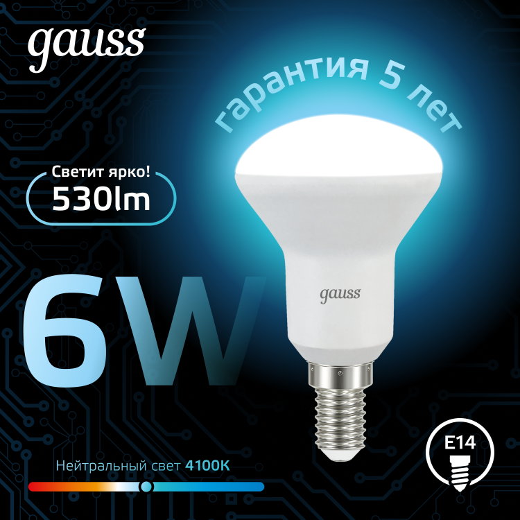 Gauss Лампа R50 6W 530lm 4100K Е14 LED