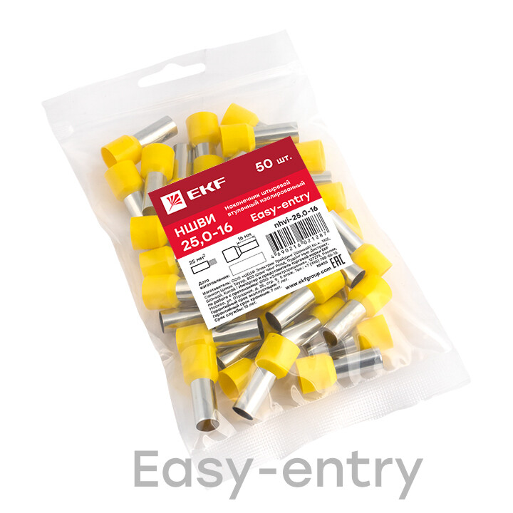 EKF PROxima Наконечник штыревой втулочный изолированный НШвИ 25,0-16 (50шт.).